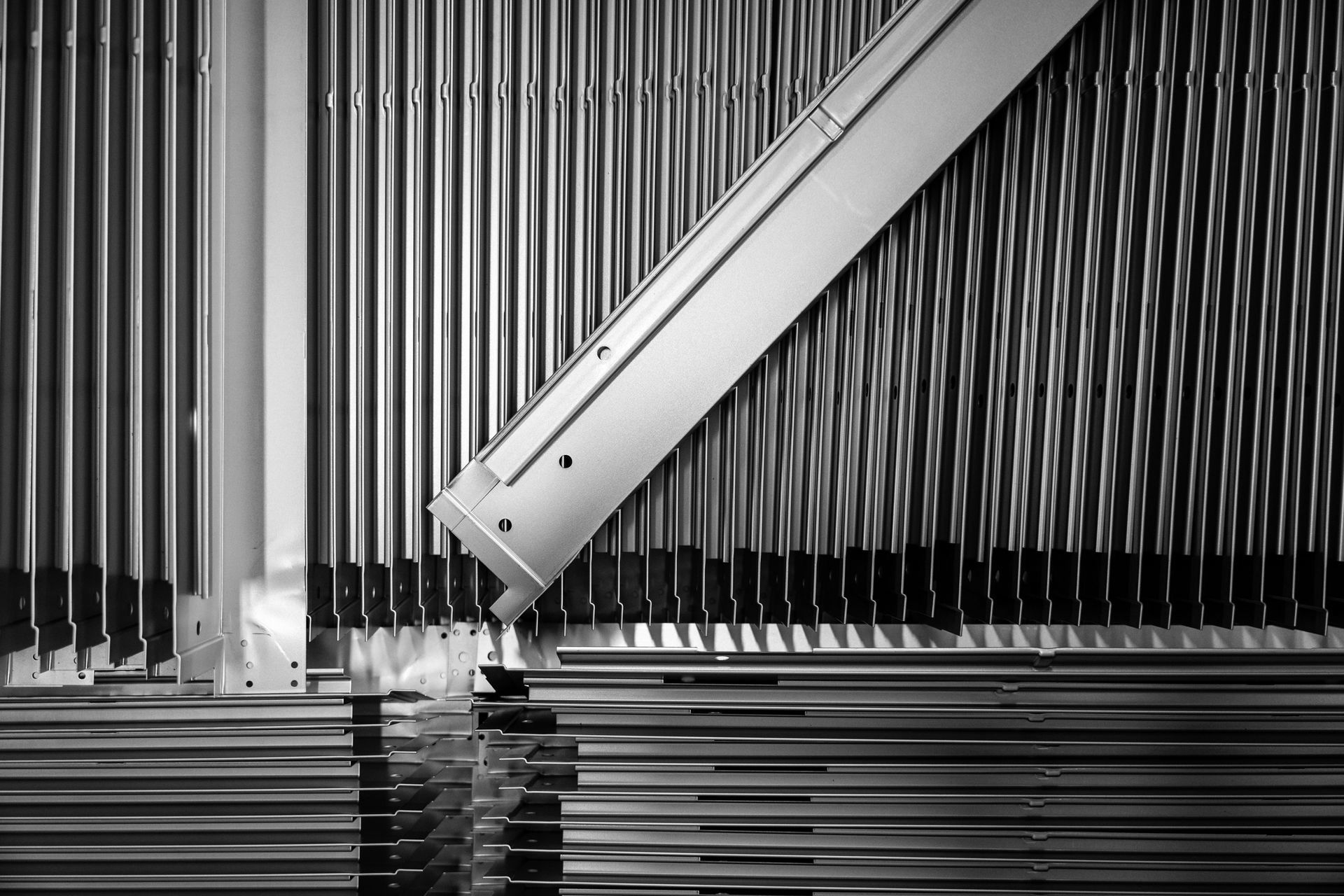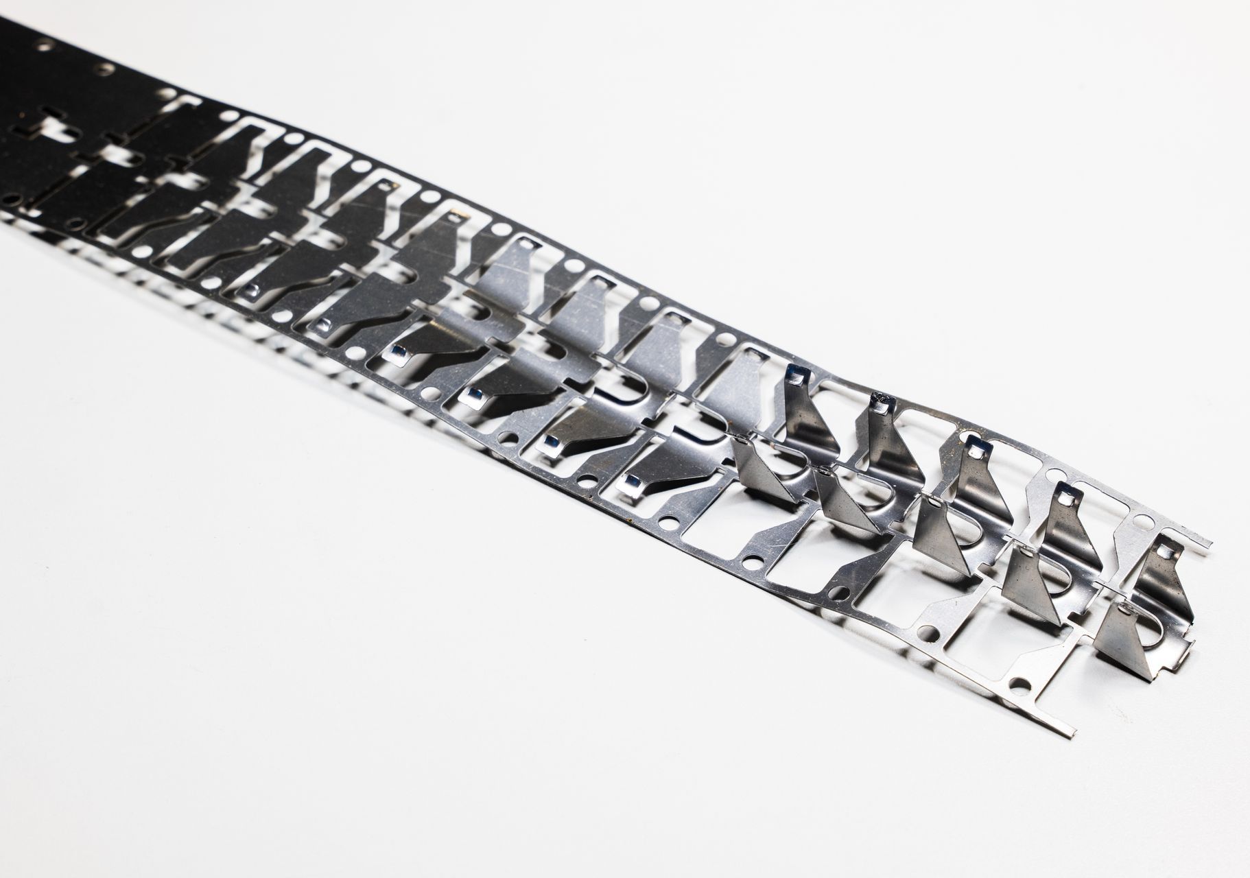 Oltre 400 stampi gestiti: 14 linee automatiche da 80 a 500 ton, 11 presse da 25 a 300 ton, 1 linea profilatura, 3 linee puntatura/saldatura, 1 confezionamento termoretraibile, 5 postazioni semiautomatiche. Mantenuti con programmi di manutenzione preventiva.